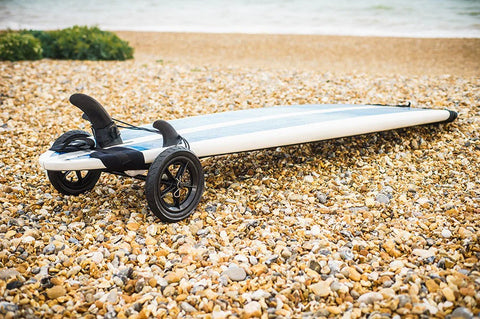 Shore Ride SUP Carrier helps get your SUP or kayak to the water's edge. You can either attach to a bicycle to take your craft longer distances or tow by hand. You can attach or take off easily via the handle. The Shore Ride SUP Carrier is the hassle-free solution for transporting your paddleboard to the water's edge.